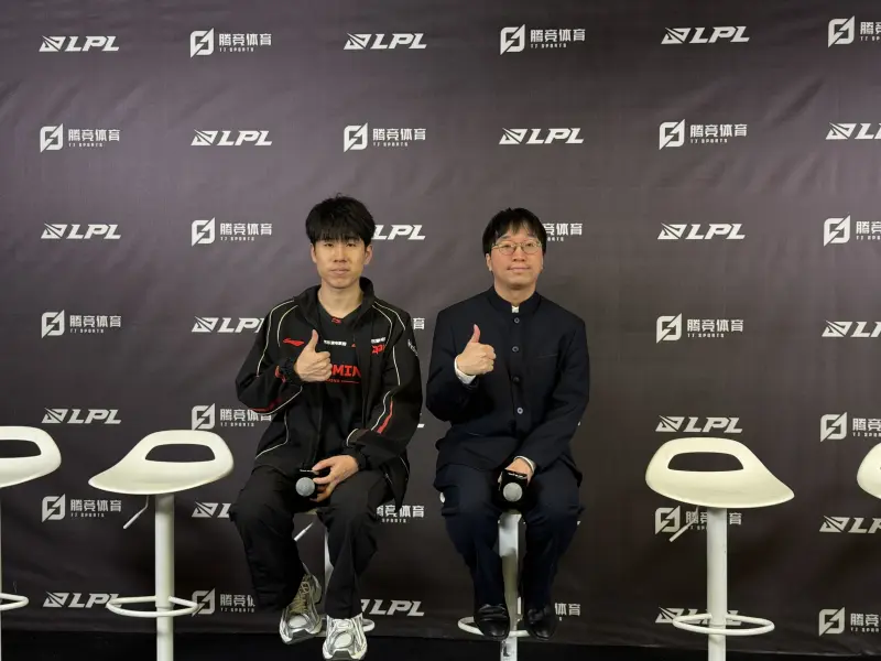 Tabe教练:第一局,我觉得我们的BP还有选手们的发挥都做得比较好,整体阵容也是比较优秀的,所以第一局比较简单地拿下。第二局,BP方面我们互相之间都有一些设计,打到前期的时候,因为有一些进攻的失误,虽然下路比较优势,但没有滚到非常大的雪球。不过最后也是因为选手们的配合和联动做得比对手好,把下路养得非常肥,所以拿下了比赛。虽然是2-0拿下,但也暴露了比较多的问题,所以我们要抓紧复盘,好好准备下一场比赛。